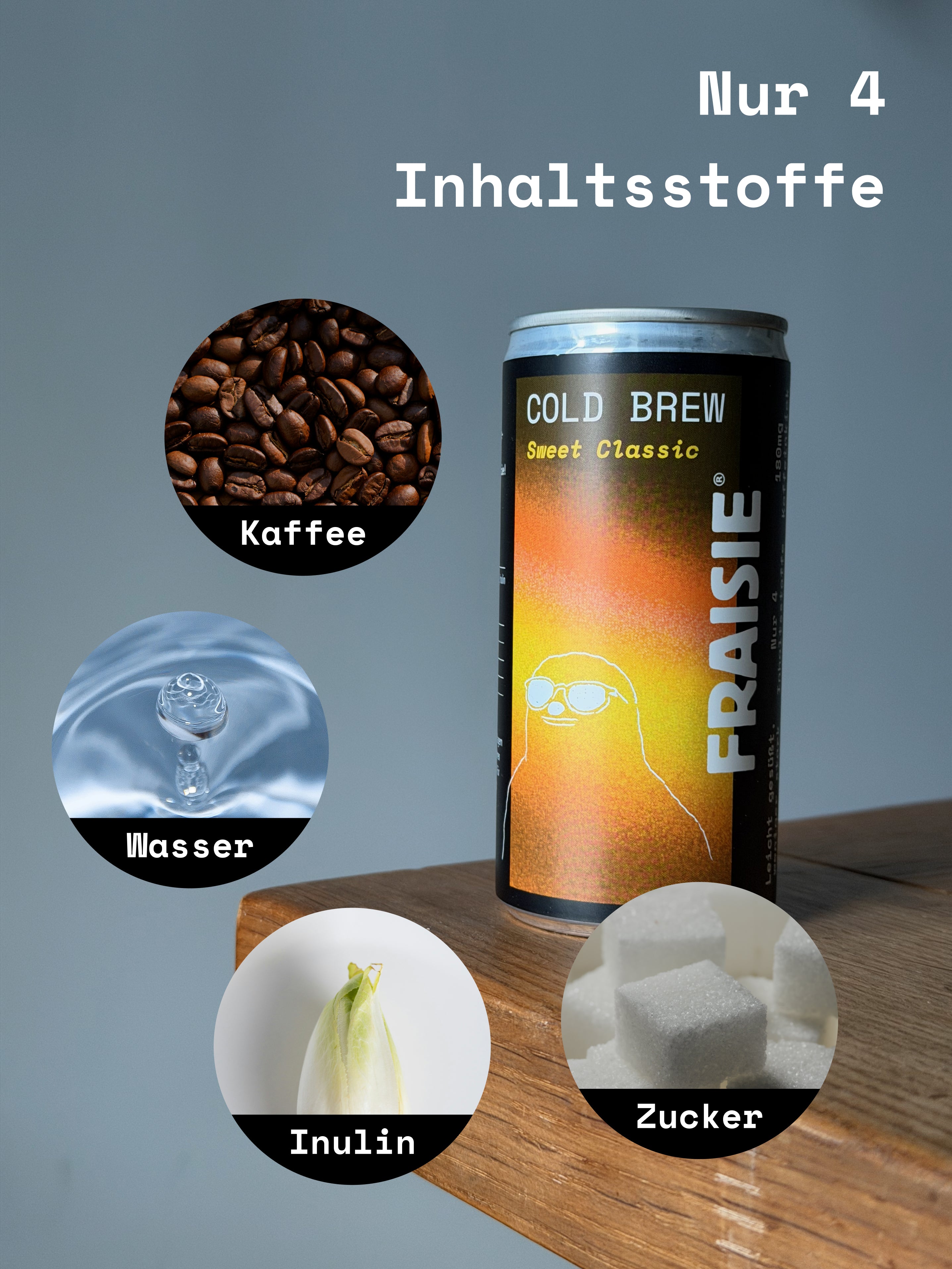 Schluss mit endlosen Zutatenlisten, künstlichen Zusätzen oder "funktionalem" Hype. Fraisie ist die Rückkehr zum Wesentlichen: Erstklassiger Cold Brew ohne Schnickschnack. Einfachheit, die funktioniert und dir ein absolut gutes Gewissen beim Genuss gibt.